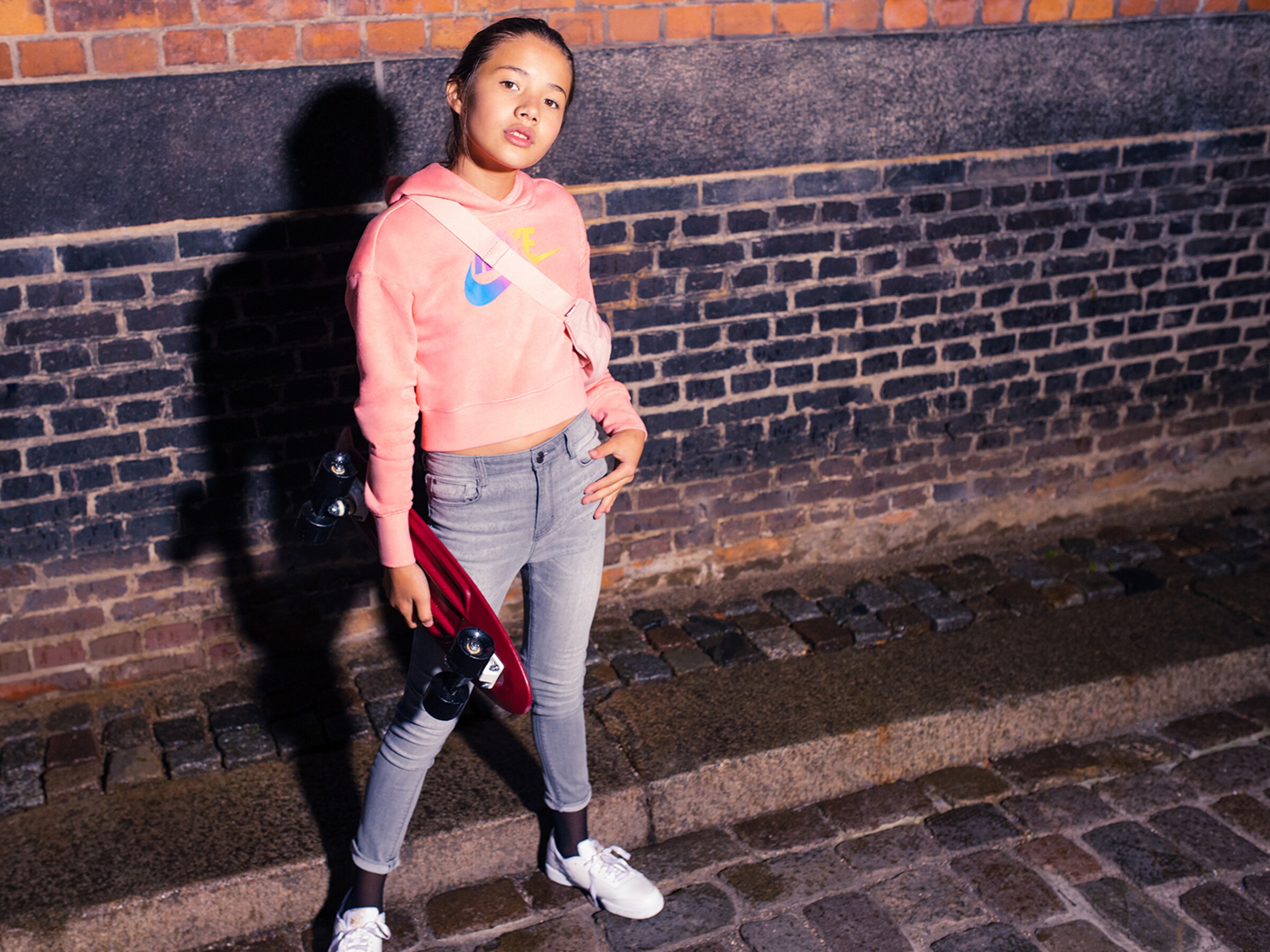 Kombináciou tenisiek a mikiny jednoducho nikdy nič nepokazíš. Dovolené je všetko, čo sa ti zapáči – ugly tenisky alebo neutrálne športové modely. Trendy look môžeš doplniť ľadvinkou ležérne prevesenou cez rameno. PS: Čerešničkou na torte je výber ponožiek. Na aktuálne chladnejšie počasie sú ideálne športové ponožky alebo čierne nylonové pančuchy.